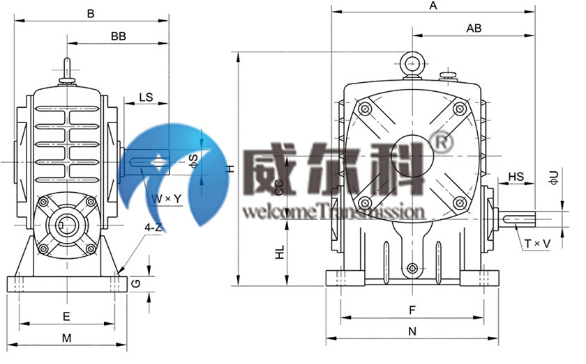 WPA減速機(jī)由裝在剛性的密封箱體中一對或者幾對相嚙合的齒輪、蝸輪、蝸桿等所組成,在機(jī)器中作為一個獨(dú)立的部件。常用在原動機(jī)和工作機(jī)之間作為減速的傳動裝置。相反,在少數(shù)場合下,例如離心式壓縮機(jī)等需要應(yīng)用增速的傳動裝置,這類傳動裝置稱為增速機(jī)。減速機(jī)的由于結(jié)構(gòu)緊湊、效率較離(齒輪減速機(jī))、傳遞運(yùn)動準(zhǔn)確可靠,使用維護(hù)并可成批發(fā)生產(chǎn),故在化工廠、機(jī)械機(jī)、工程機(jī)構(gòu)領(lǐng)域應(yīng)用很廣泛。減速機(jī)的類型很多,一般可以分為齒輪(圓柱齒輪、圓錐齒輪)減速機(jī)、蝸輪減速機(jī)等類型。按照減速機(jī)的級數(shù)不同,又分為單級、兩級和三級減速機(jī)。另外有立式和臥式之分。減速機(jī)主要由齒輪(或蝸輪)、軸、軸承和箱殼等所組成,而齒輪(或蝸輪)、軸、軸承等由箱殼來支承。因此,箱殼應(yīng)具有足夠的剛度,以避免受載后變形從而影響傳動質(zhì)量以及工作性能。正規(guī)減速機(jī)廠家生產(chǎn)的減速機(jī)都是采用鑄剛鑄成的。